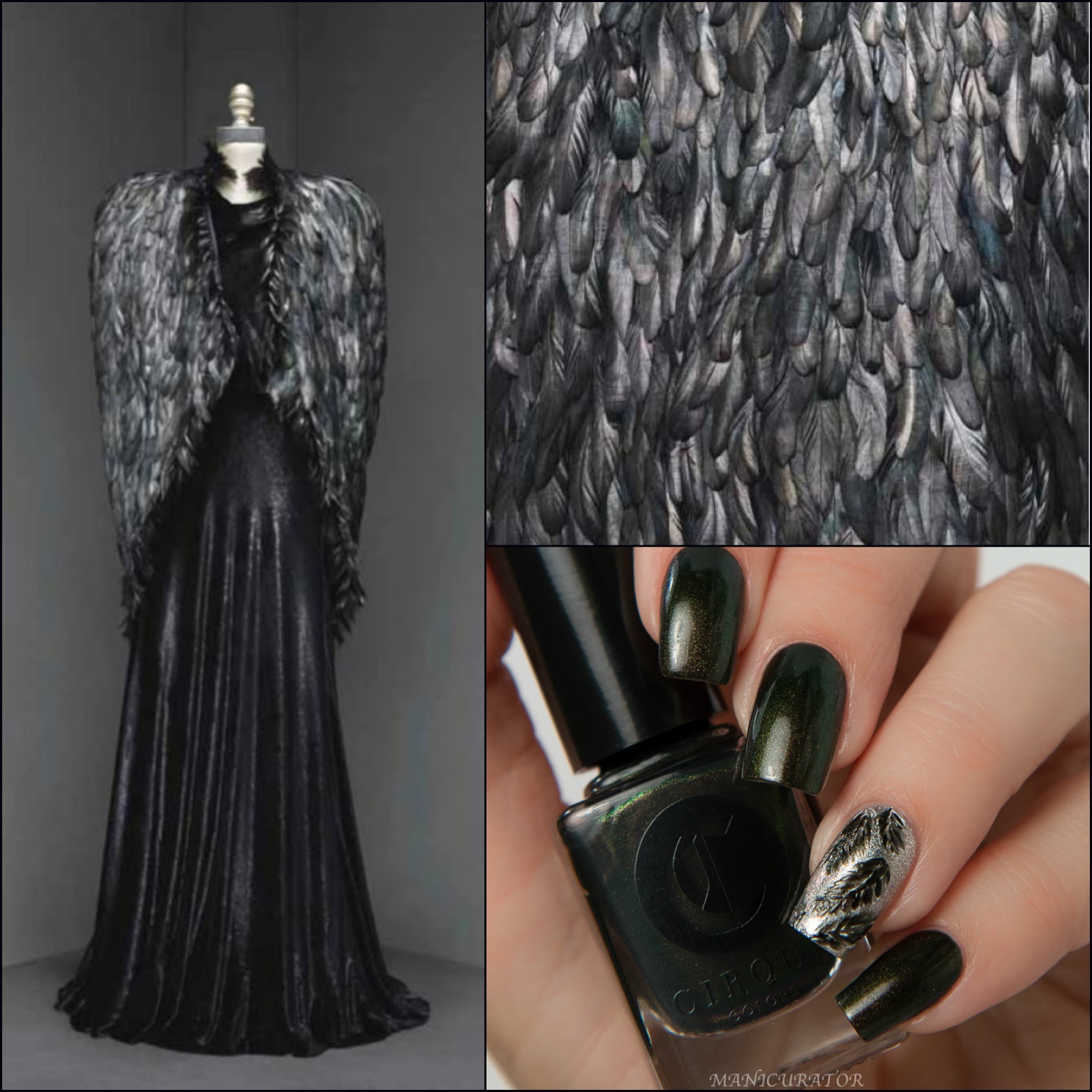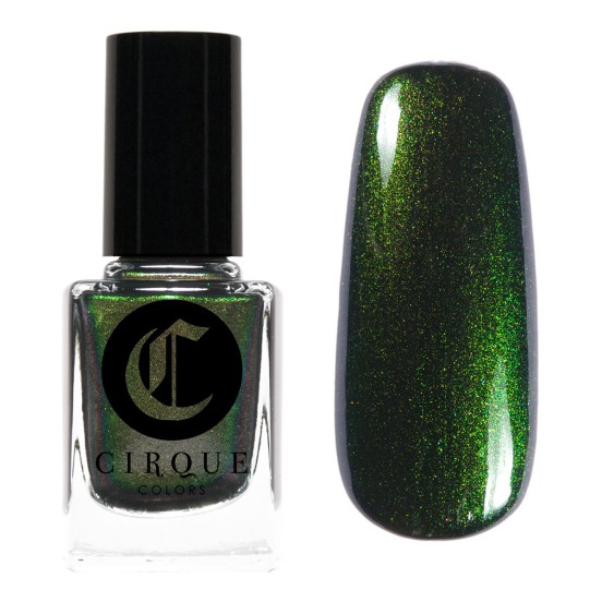 Cirque Colors RAVEN Limited Edition: A spellbinding black with green iridescent shimmer calling to mind the opulent designs for evening showcased within the Manus x Machina exhibition. This multi-dimensional nail lacquer was inspired by such diverse materials as feathers, satin, and vinyl used in haute couture embellishments.