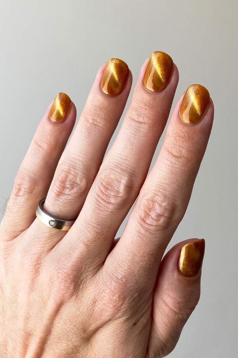 This one’s straight from @brushedbyb_’s Fall mood board. A golden magnetic with an amber glow that shifts like fall leaves in motion. Hidden Hue was inspired by the science behind the season, where cooler temps let nature’s hidden pigments take center stage. It’s soft, radiant, and full of dimension, just like those first golden mornings of autumn in the PNW.