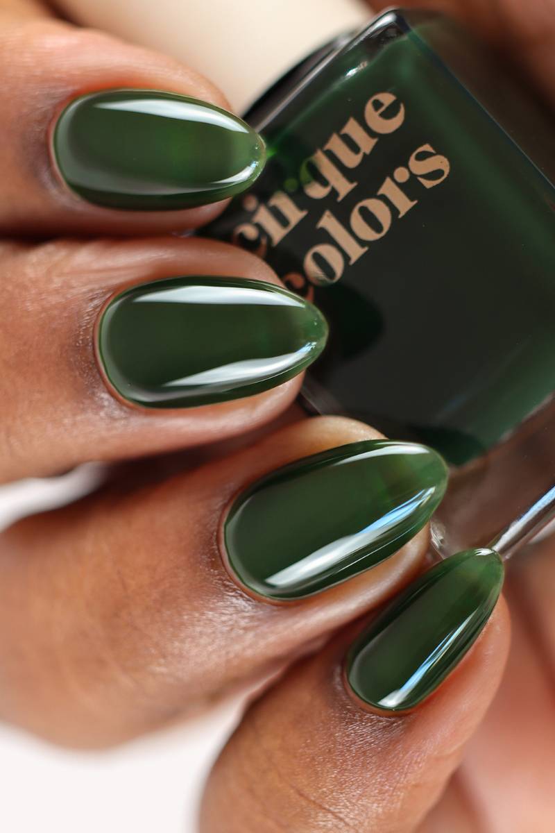 Forest Jelly is a deep blackened green jelly nail polish with a shiny, transparent finish. Our jelly polishes feature a sheer, buildable formula giving the color depth and allowing your natural nail line to peek through.