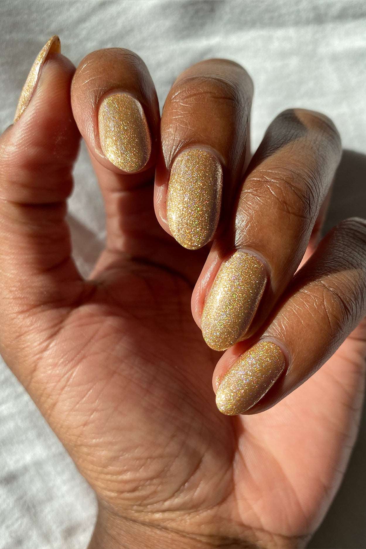 Notes: Holographic polishes look best under direct light, such as sunlight or strong indoor bulbs, to bring out the prismatic rainbow effect.