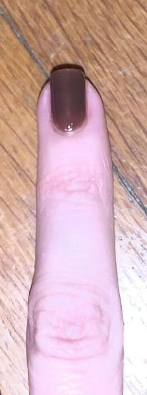 This appears purple in the bottle, and dark plummy red on my nails. I am disappointed as I expected something more brown, but maybe it’s just my skintone. It’s streaky on the first coat but evens out after 2. Photo shows 2 coats.