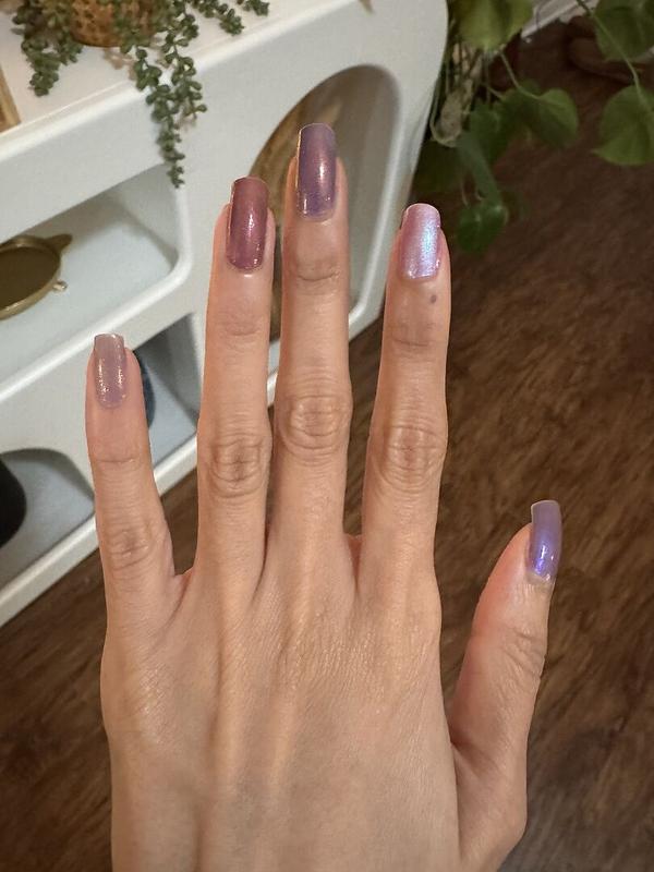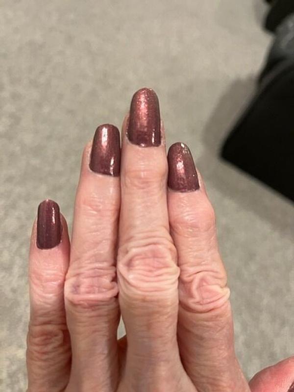 Beautiful shimmer reflects that are somewhat coppery and give an ethereal look. At the same time, I wasn’t expecting the silver flecks which to me give the appearance of dust or specks that are on the nail by mistake. Overall beautiful shade but it does have these sort of white/silver...read more