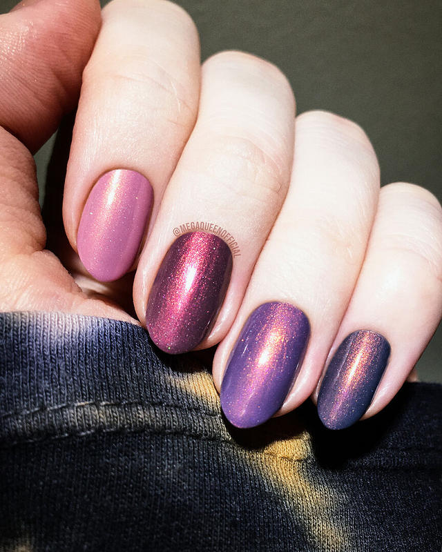 This is a gorgeous color. It applies in one coat, self levels and the shift is subtle yet definitely discernible. It looks great with my very warm skin tone.