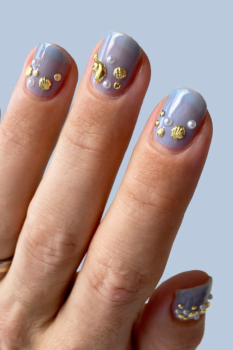 These shiny shells and precious pearlescent dots are like a souvenir from a breezy beach holiday. Dainty and intricate, these charms complement your oceanic or tide pool-inspired nail art designs. They stick to your slightly tacky base layer quicker than you can say, ”She sells seashells by the seashore.”