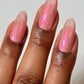 Hot Gossip is a sunset orange Shimmergraphic™ nail polish with a red-orange-green color shifting aurora shimmer and an intense scattered holographic effect.