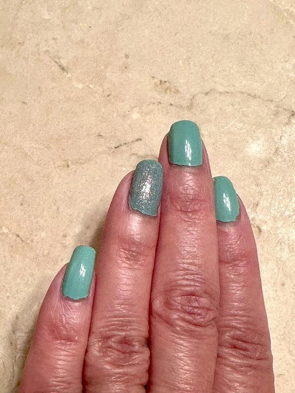 My favorite color irl. It’s a grayish green but still has the fresh pop of an aqua blue hue. It went on smooth but it did chip after one day. Could be since it has a white base you see the chips more easily than a holo or sparkle. Still...read more
