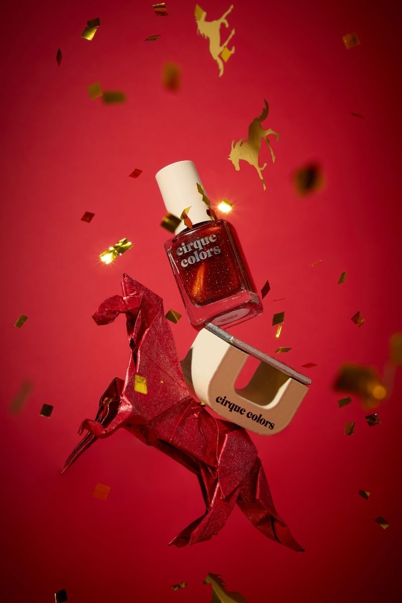 - Apply 1-2 thin coats of magnetic nail polish to desired opacity and let dry.