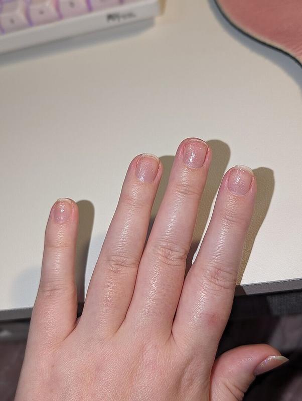 Good topper nail polish. I love the holo sparkle and the clear base. The pictures were misleading, as I thought it had a pink or peach base to it.