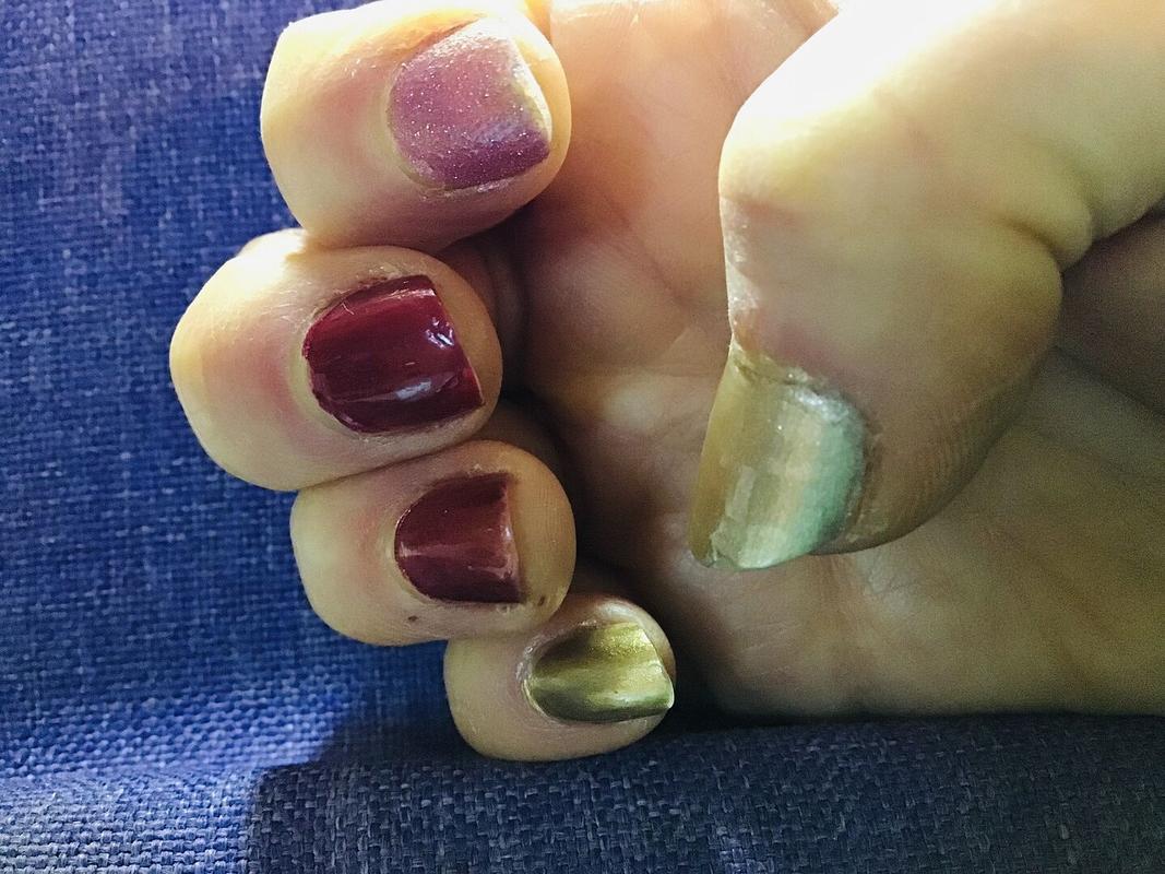 On my skin tone it pulls more orangey dark red, hence Rusty Slipper. Even in the bottle you can see orange-green shimmer. It magnetized super easily and had a very strong velvetized effect. Smooth, easy to apply formula.