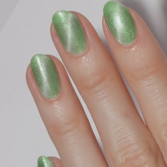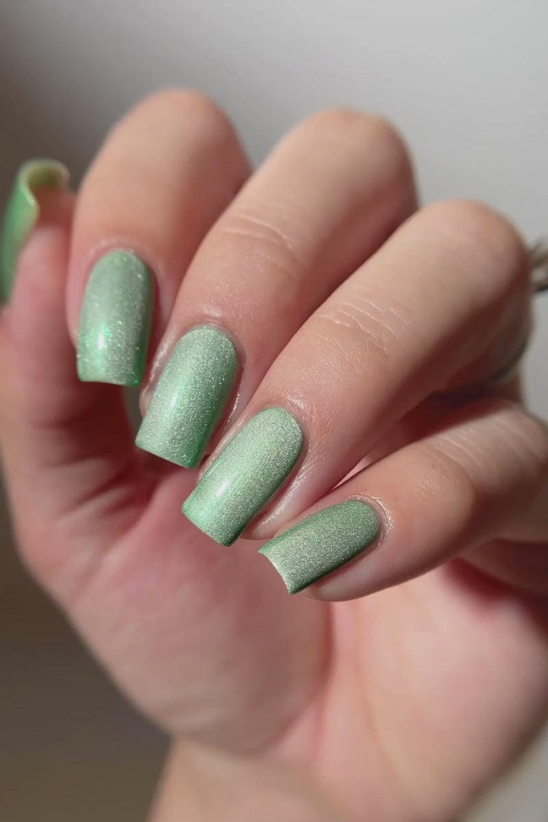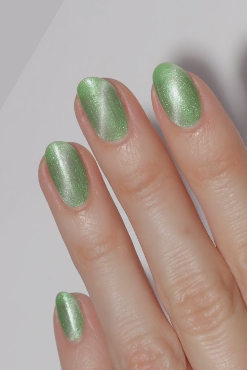 Sprout is fresh air in nail polish form. It’s that clean, botanical green that makes you want to touch grass and also look expensive while doing it. The fine magnetic pigment gives a smoother, glassier magnetic effect that shifts beautifully as you move. Cat-eye it for a crisp streak of light, or velvet it for a soft, frosted glow that looks like spring sunlight filtered through leaves.